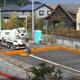 コンクリートの工事は1日で完了。雨除けのブルーシートをかぶせて,コンクリートが乾くのを待ちます。