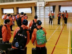 11月8日(土)成田小金管バンドのみなさんはマーチングバンド東北大会に出場し,自分たちの演奏と演技を披露してきました。写真は,当日朝の最終確認の様子です。