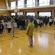 まずは,6年生代表による挨拶です。寒い体育館でしたが,子どもたちの元気な声が響きました。