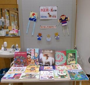 1月の掲示では,「お正月・馬の本」を紹介・展示しています。