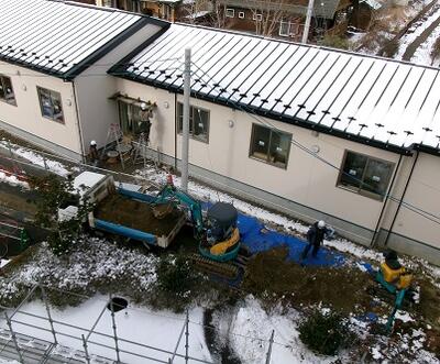 成田小学校児童クラブの増築工事の様子をお伝えしています。
