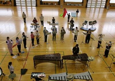 卒業演奏会に向けて,金管バンドは練習を重ねてきました。写真は2月14日(土)の練習風景です。