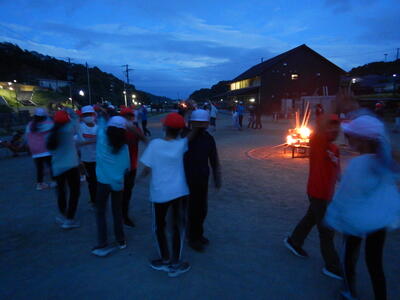 男女仲良くフォークダンス!このあとキャンプファイヤーソングを子供たちの生バンドの演奏に合わせて歌いました!