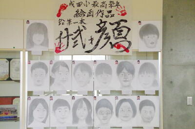 職員玄関の正面に児童の図工作品を掲示するコーナーがあります。学年ごとにローテーションで掲示するようになっています。学校にお立ち寄りの際にぜひお立ち寄りください。今は6年生の描いた自画像を展示しています。