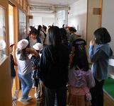 あおぞらタイムの前に,高学年の子どもたちは低学年の子どもたちを教室まで迎えに行きます。中学年の子どもたちは,自分たちでたてわり班の集合場所まで移動します。