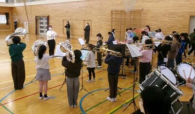 (1)金管バンド(5年生以下のメンバー)の演奏に合わせて6年生が入場です!
