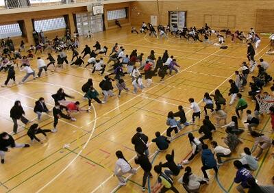 (3)4年生が考えてくれたクイズと長縄跳び対決です。クイズは,6年生が1~5年生の時のエピソードから出題されました。懐かしい問題に6年生からも歓声が上がっていました。長縄対決では,なんと!4年生が6年生に勝利しました。